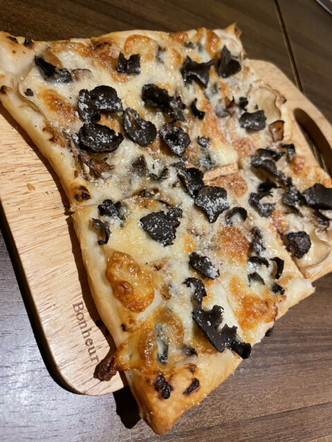 名前の通りトリュフがふんだんに乗ったサクサク生地のタルト。ピザがないので一口ピザがわりにペロッと食べれてしまいます。