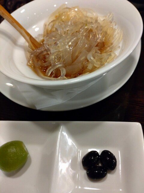 表看板にやられたので、入店、寒天!心太とアイスカフェ・オ・レクリームトッピング!連れは心太とアイスカフェ・オ・レ!心太の蜜の種類で店員さんがわからないらしいのと、数を違く言うので、確認しましたが、確認...