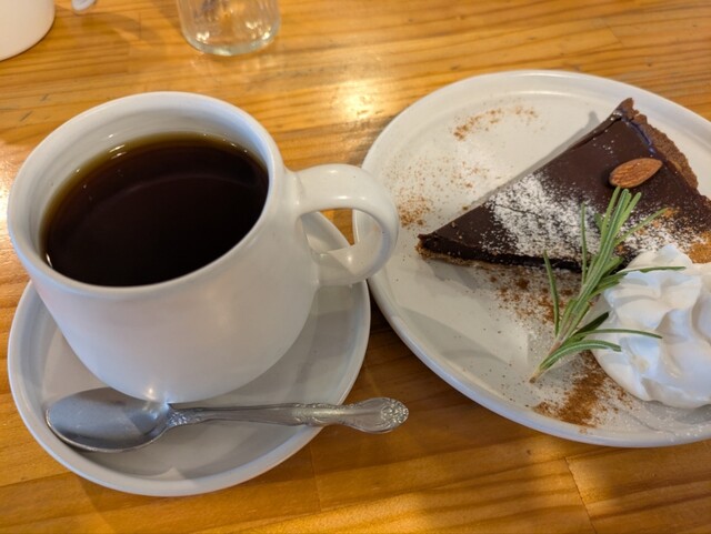 コーヒーミディアムとチョコタルト、これは鉄板ですが、他のメニューでもグリーンカレーが、私のイチオシメニューです。