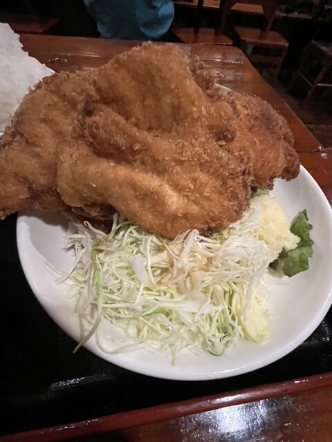 チキンカツの大きさに圧倒。想像以上。胸肉のチキンカツだからあっさりと食べやすい。卓上のタルタルソース、かつ用のタレからしなどあり、味変しながら最後まで美味しく楽しく食べられた。