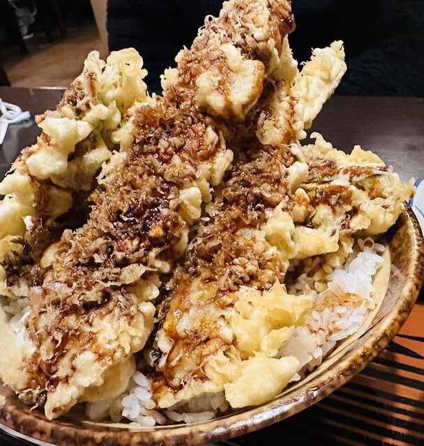 私は野菜天丼(なす、ししとう、しいたけ、大葉、