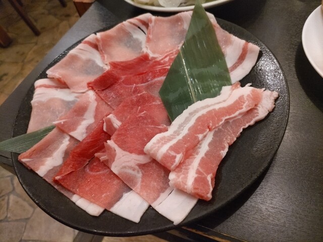 初しゃぶしゃぶを焼くとは思わなかったですが意外と美味しかったです。初食感。和牛は色んな店舗でも食べる事からあえてアグー豚しゃぶしゃぶセットを。見た目は量的には少ないかなぁと思いましたが最終的には満足。セットで元々提供されたお肉のハーフ量があったので追加注文。鉄板?にも特徴かありお肉から出る脂か溜まらないように鉄板の隅に穴が開いておりそこから余分脂が落ちる。中々考えているなと。つけタレも2種類。塩ベースと醤油ベース。塩が美味しかったです。またお邪魔したい店舗の一つになりました。セイロ蒸しもあります。