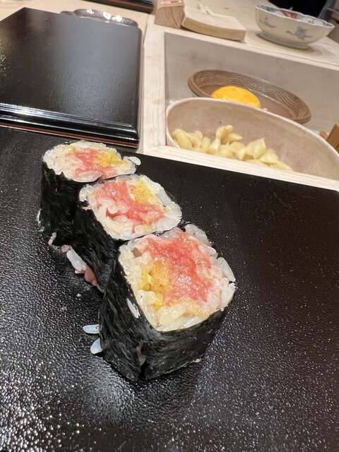 朝取れ空輸や当日港まで直接買い付けたもの、新鮮でかつ処理保存などがよくネタがとにかくいいです。地方の漁師さんや漁港の方々との関係値がないとできませんよね。印象に残ったものも多く、あじ、かわはぎは特によかったです。
