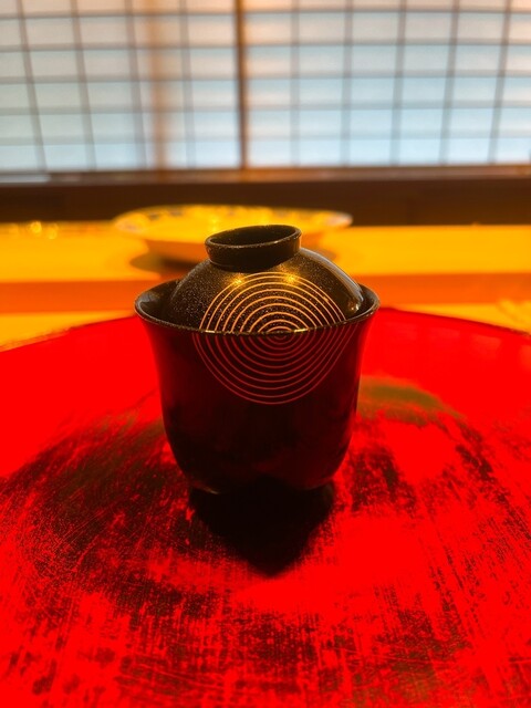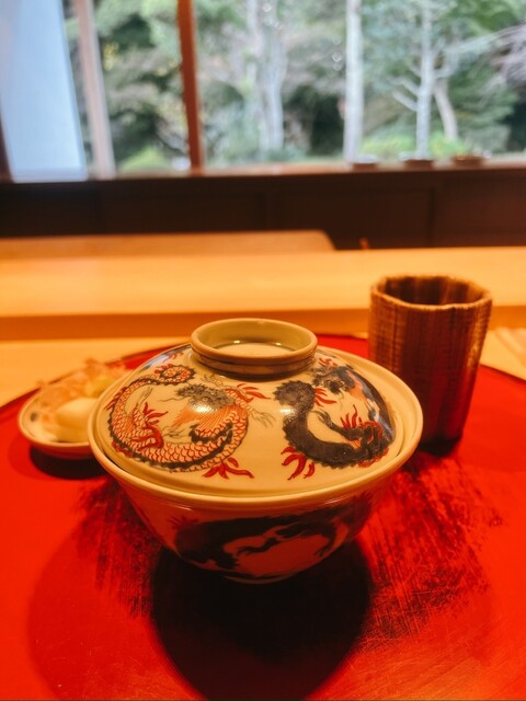 移転後のこちらの場所は室町時代のお庭を眺めながら贅沢な空間です。お食事後は茶室に移動しお茶とデザート、その後お庭へ。素敵な世界観です。