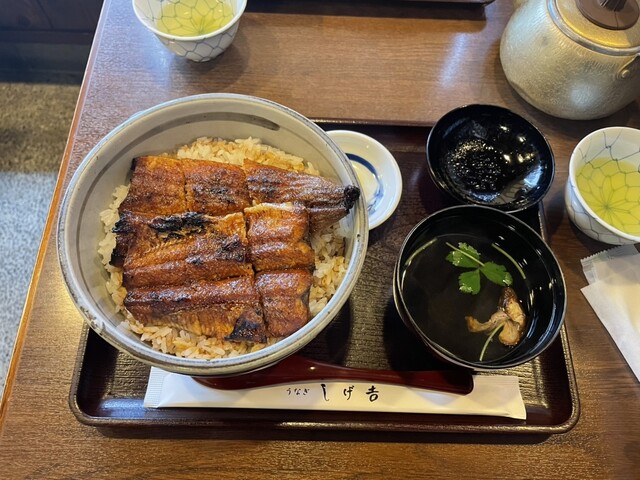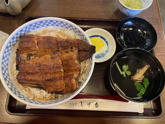 特上うなぎ丼(1匹半)と並うなぎ丼(1匹)を頂きました。鰻は外はカリッと中はふっくらで炭の香りがフワッと香ってきて、タレは少し甘めのしっかり味がタップリ、米は少し硬めに炊き上げられていて、まさに僕ら好みのうなぎ丼でした。
