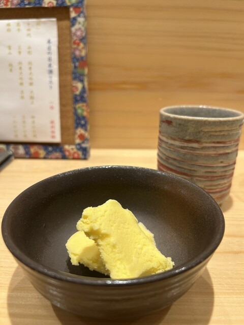 握りの合間に提供されたのは、ズワイガニ入りの茶碗蒸しと、自家製ダレで仕上げたカレイの焼き物。