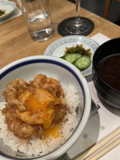 締めは小エビのかき揚げ丼に半熟卵天を追加で載せて〜と!最高です!