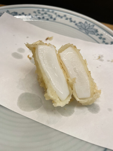 最近コースがリューアルして、天ぷら9品の黒潮コースをお願いしました。残念なのは今までのコースには最初にトリュフポテトの天ぷらが2つ出ていたのになぜか切干大根に変更されてがっかり。