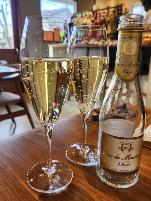 ランチコースのアミューズとノンアルコールワインが来ました。