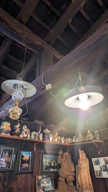 囲炉裏、薪ストーブが暖かくほっとする店内