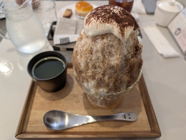 今日は、かき氷目的だったので、ティラミス味のかき氷を注文、連れは、ケーキとアイスコーヒーを注文しました。