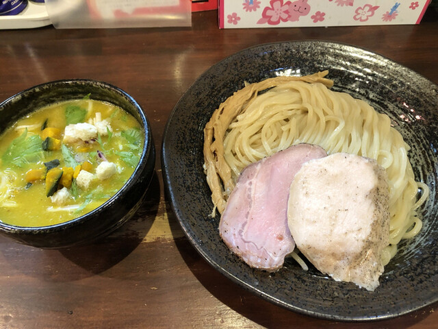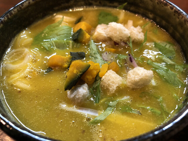ベジのつけ麺にしました。こちらは、この時はカボチャベースだったかと思いますが、ベジなのに濃厚で、ラーメン系で食べたことない感じで、これまためちゃウマい。甘みのあるスープでした。