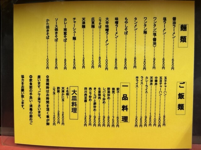 その近くのカレー屋がたまたまやってなくて、そういや亀有飯店近いなと、閉店時間を確認せずに突撃。19:30ラストオーダー、20:00閉店というの行ってはじめて知りました。