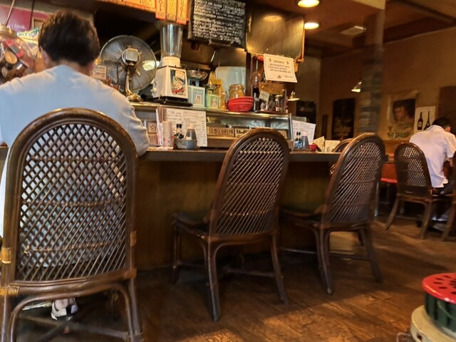 店内は、バーレストランというか、壁面レンガで渋い色合い。カウンター7席ぐらい?テーブル4台ぐらい?