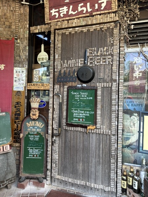 店の看板、営業時間、ランチメニューのほか、食事メインはランチで、夜は酒と肴を楽しむ店、などの注意事項など書かれています。