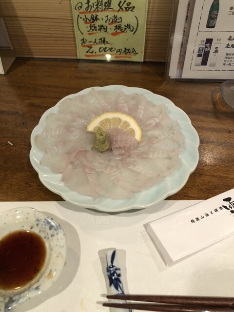 21時ごろ訪問。先客なし。2年ぶりに訪問したが、メニューが様変わりしている。1種類1000円していたお刺身は1種類300円になりととても頼みやすくなった。2件目利用しやすい。やはり味は文句なし。お酒は越銘醸さんの雷や壱穣を頂く。こちらもお米の旨さをしっかり感じられるお酒で相変わらず美味しい。