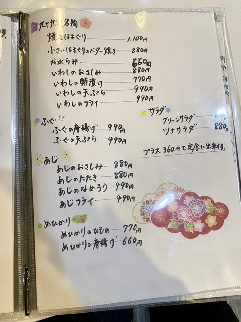 塩焼きの鯛も良いサイズで、イワシの刺身も言う事なし。