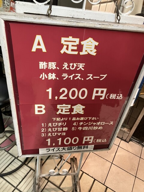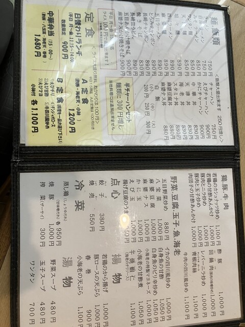 B定食の牛四川炒め1100円、海鮮あんかけ900円、餃子380円を注文。