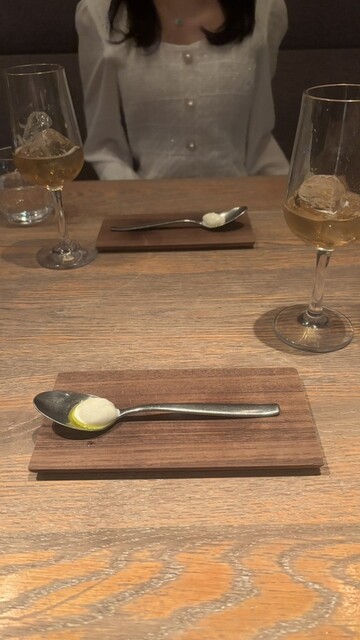 去年夏にも来店していたが、季節によってコースメニューが変わるとのことで来店。今回はノンアルのペアリングを注文した。それぞれの料理につき素材の土地柄などの説明があり、とても楽しかった。ただ、自分の舌のレベルが高くないのか、前回と比べるとあまり感動がなかった。特に白子を使ったパイは難しかった。追加料金4,000円ほどでペアリングを提供してくれるので楽しめるし、もちろん価格以上の価値はあるのだが、もっとフレンチを深く理解していきたい。