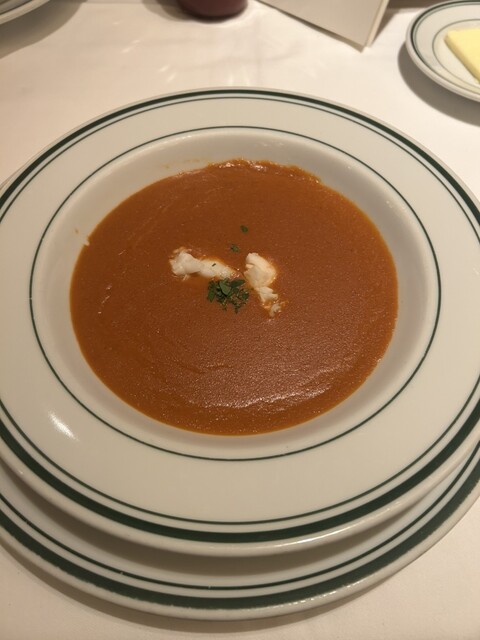 次にメイン前の本日のスープ!チキンスープだったのですが、600円ちょっとで、ロブスタービスクに変更できるので、変更しました!今までで1番っていっていいほど美味しくて、味が濃厚でエビが口の中で広がりました