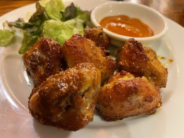 小さめだな、という第一印象だったが、魔法のランプから巨大な魔神が飛び出したかのように、香ばしい匂いが大きくふわーっと眼前で広がった。フォークで刺して口に運んでみて、私は目を見開いた。これは美味い。脂身があってとてつもなくジューシーである。コリっという食感からジュワーっと肉汁が口内に流れ出る。