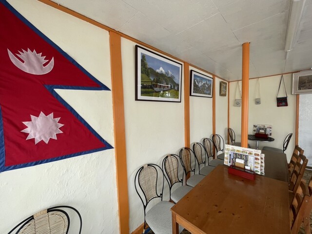 敷居のないカジュアルな食堂のような雰囲気である。私が座った背後の壁には大きなネパールの旗が貼られていた。視線を右へ移していくと風景画が飾られており、ネパールの山村がありありと頭に描き出された。