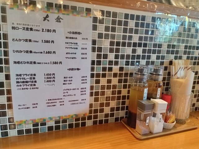 時間の都合で今度は出先に向かう途中で昼食を摂る事となり、ルート近くに安くて美味しい豚カツを食べさせる店があるとの事で車を走らせます。今回利用する店は「とんかつ大倉」さんです。