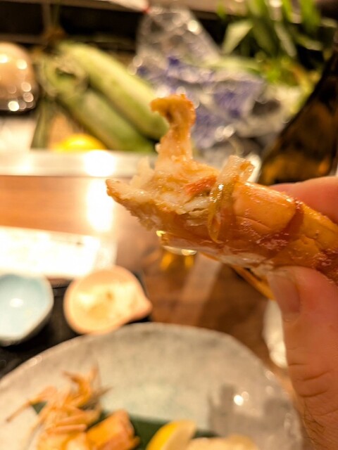 身が肉厚で美味しい。炭火でこんがりやられていて香ばしく海老の香りが感じられます。付き合わせにゆずマヨネーズがいいアクセントで最初そのまま食べて、最後に'ゆずマヨネーズつけていただくと美味しいです。