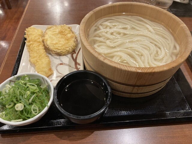 釜揚げとぶっかけの冷。桶だと乗らないので熱々の器に入れてくれました。気遣いが凄いです。