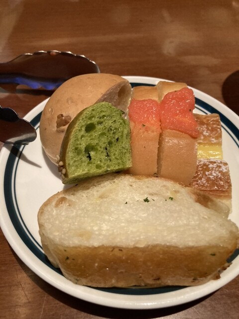 料理も美味しくて、パンが食べ放題。4回取りに行きました。毎回違うパンが並んでた。ピザや、ショートパスタもありました。アラジンのトースターでリベイクも出来ます。