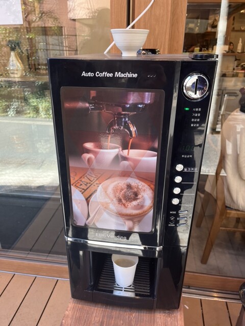 支払い後に外にあるコーヒーマシンに韓国のお金入れてポチっとするコーヒーなのですがこれがまた美味しい!ホッとするのです。