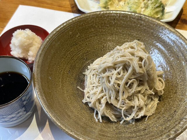 もりそば、辛味大根田舎蕎麦、だし巻き玉子、天ぷら盛り合わせ、鮎の甘露煮、エビスビール中瓶、日本酒1合✖️2で、9450円でした。
