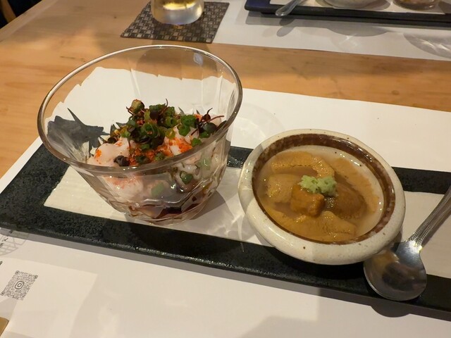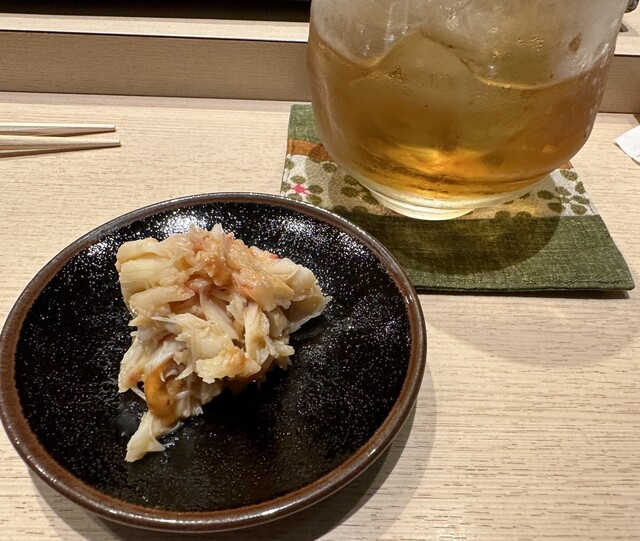 カウンター6席ほどのこじんまりしたお店。目の前で調理、提供してくれます。大将の人柄の良さ腕の良さが際立ち大変良い感じ。まずはおつまみか...