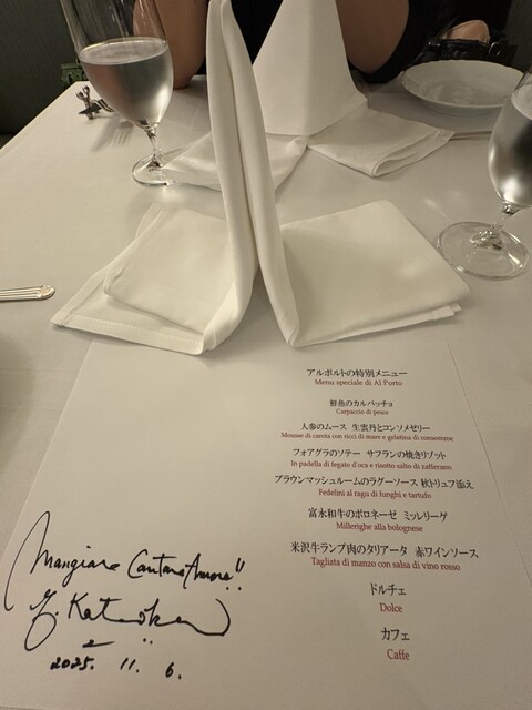 片岡シェフのサイン入りメニューをいただけて、思い出に残るランチタイムになりました。