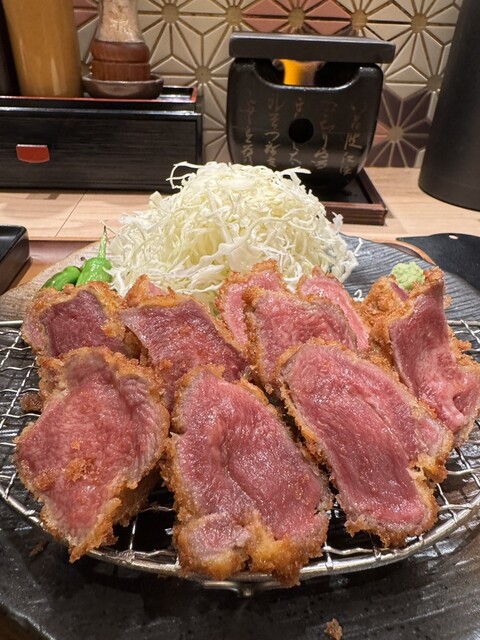 牛カツはしっかりと火を通しても、柔らかく、脂の甘さが際立っていました。