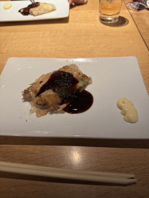 天の名物の一品は、牛スジのお好み焼き風料理でした。何故、今までこのお好み焼きに出会わなかったのかと後悔するほど、お好み焼きの概念が覆される新感覚のお好み焼きでした。