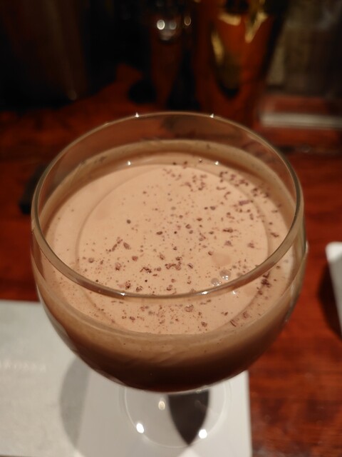 メニューに「チョコをブランデーに直接溶かす」って書いてあったので決定。飲んでみると普通のアレキサンダー(ブランデー1/2、カカオリキュール1/4、生クリーム1/4)より明らかに一体感があり美味い。素晴らしいです。