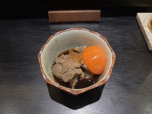 焼鳥7本、つまみ4品、漬物、軍鶏スープ