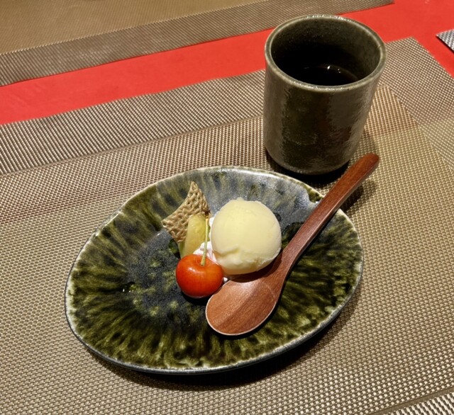 甘味はゆずシャーベットと果物はさくらんぼ、メロンでした。ちゃんとさっぱりしたデザートが出てきて嬉しいし、果物も熟してて美味しかった〜!