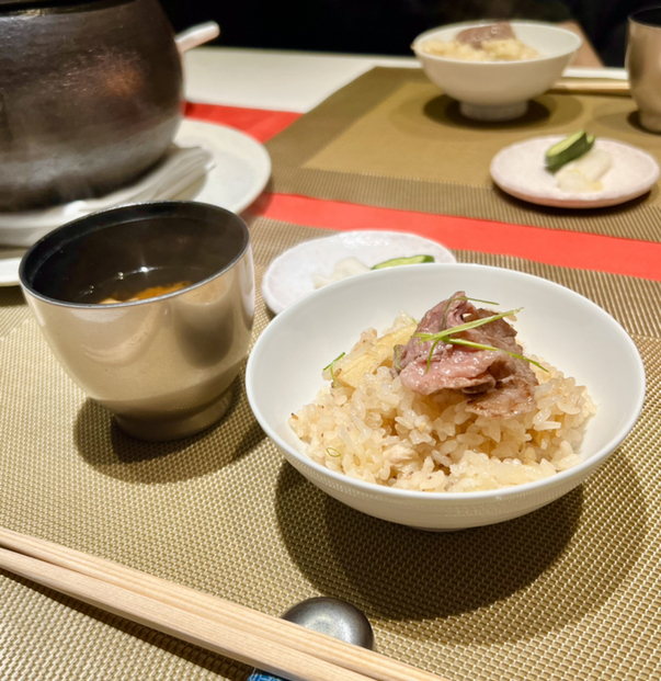 和牛をたっぷりと使った鶏肉と竹の子の炊き込みご飯でした✨凄い、、!このお店、、私の好物全部調べたのか!?ってくらい好きな物のオンパレード笑