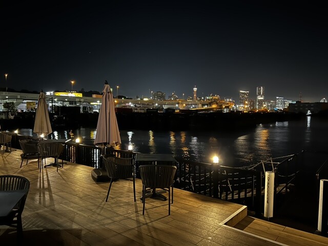 テラス席の方はワンちゃんもオッケーだし、レストラン出て右側に横浜ベイブリッジも見えます✨だから夜に来た場合、是非お外のテラス席も見てほしい!とても綺麗だし、ガヤガヤしてないので静かに夜景を楽しむ事ができます!ロマンチック!