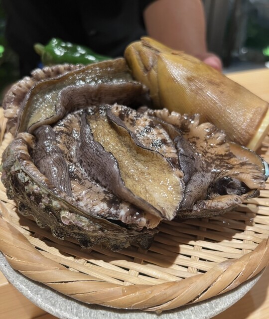 福岡の鮑で生け簀からとったばかりの新鮮な鮑!凄く大きくカットされてて食べ応え抜群です。とっても美味しくて焼き加減も丁度良くて‥めちゃくちゃ美味しいです。食べててしあわせになれる一品!
