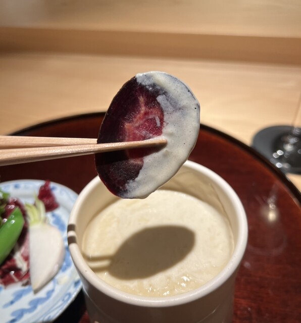 さっぱりとした味わいなのに旨味がぎゅぎゅっと詰まっている‥!コンソメのジュレがいい感じのアクセントになっててこのプルプルの食感がいい感じ。とても美味しくてこれから出てくるお料理たちも美味しいんだろうなぁ〜と思わせてくれる一品です。