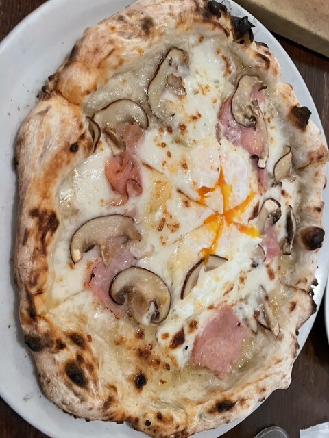 マッシュルームとハムの味が良い、ピザ生地にも合うこと