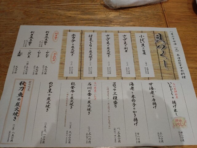 ビールと石川の地酒を3種類、料理も普段食べられない物を中心に頼みました。