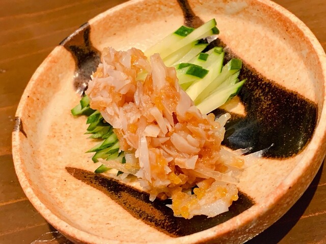 本日はずわいがに甲羅盛、かきとせりの煮びたしをいただきました。