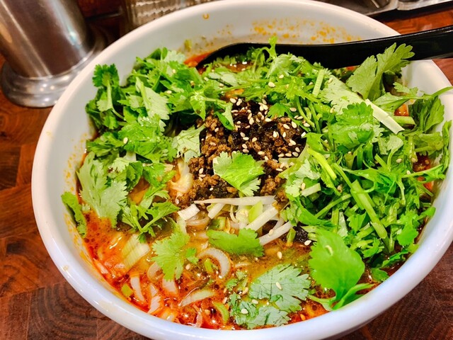 四川麺家 龍の子は、所沢駅西口からプロペ通りを進んで少し路地に入った場所にあり、地元で長年愛される四川料理専門のラーメン店です。中国料理店「離宮」の姉妹店として、本格的な四川の味を気軽に楽しめるのが特徴です。四川の本場を意識した「麻(山椒の痺れ)」と「辣(唐辛子の辛さ)」が絶妙。辛いのが苦手な人でも楽しめるよう、日本人向けに調整されたマイルドなメニューもあり。普通盛りでも他店の大盛り並みと言われる量で、がっつり食べたい人にぴったり。