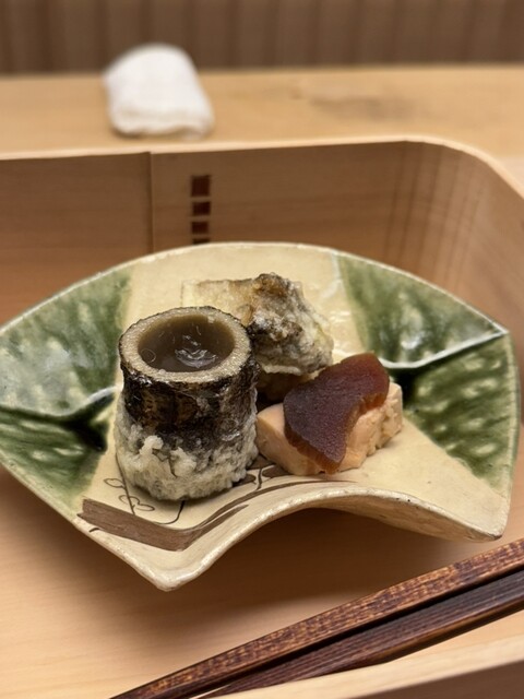 ★「 見通し牛蒡 鮑 あん肝天ぷら 奈良漬け 」