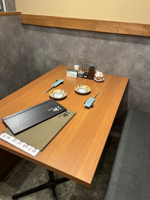 出入り口近くの テーブル席 に 通されました。 すぐ おしぼりを 持ってきてくれました。