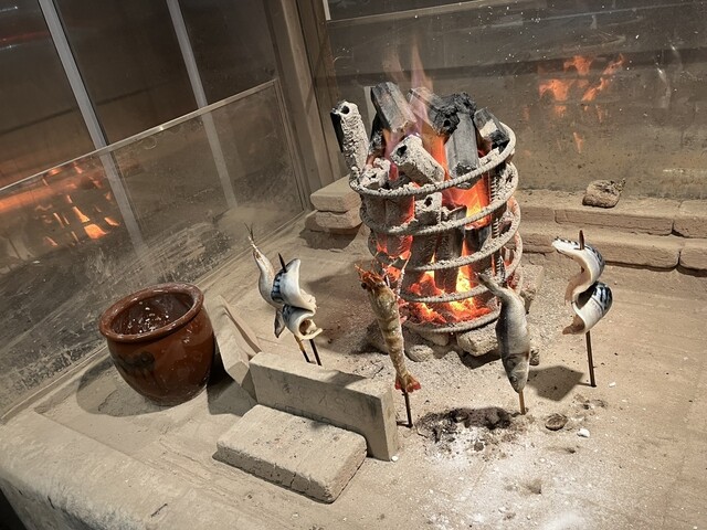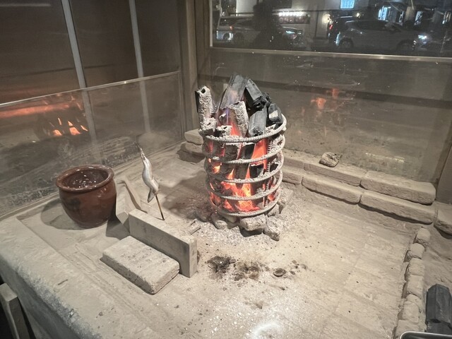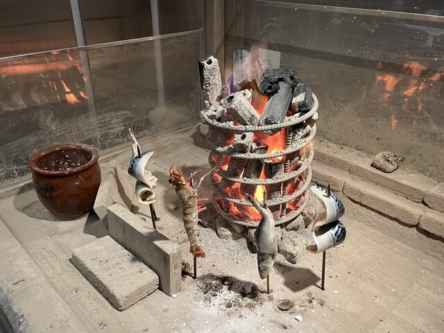 来店した日は、3月にしては 寒い日で、囲炉裏の炎 が 心地よい暖かさです。